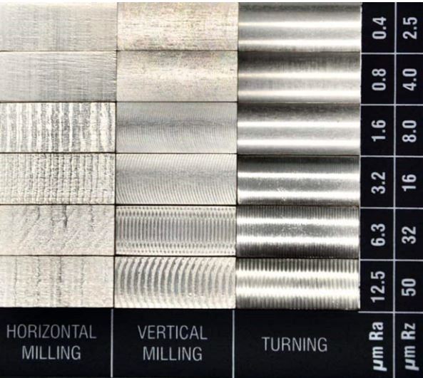 En usinage, ces mesures sont souvent associées à une échelle de finition de surface (parfois exprimée par des nombres N, comme N1 = très fin, N12 = rugueux). Par exemple :